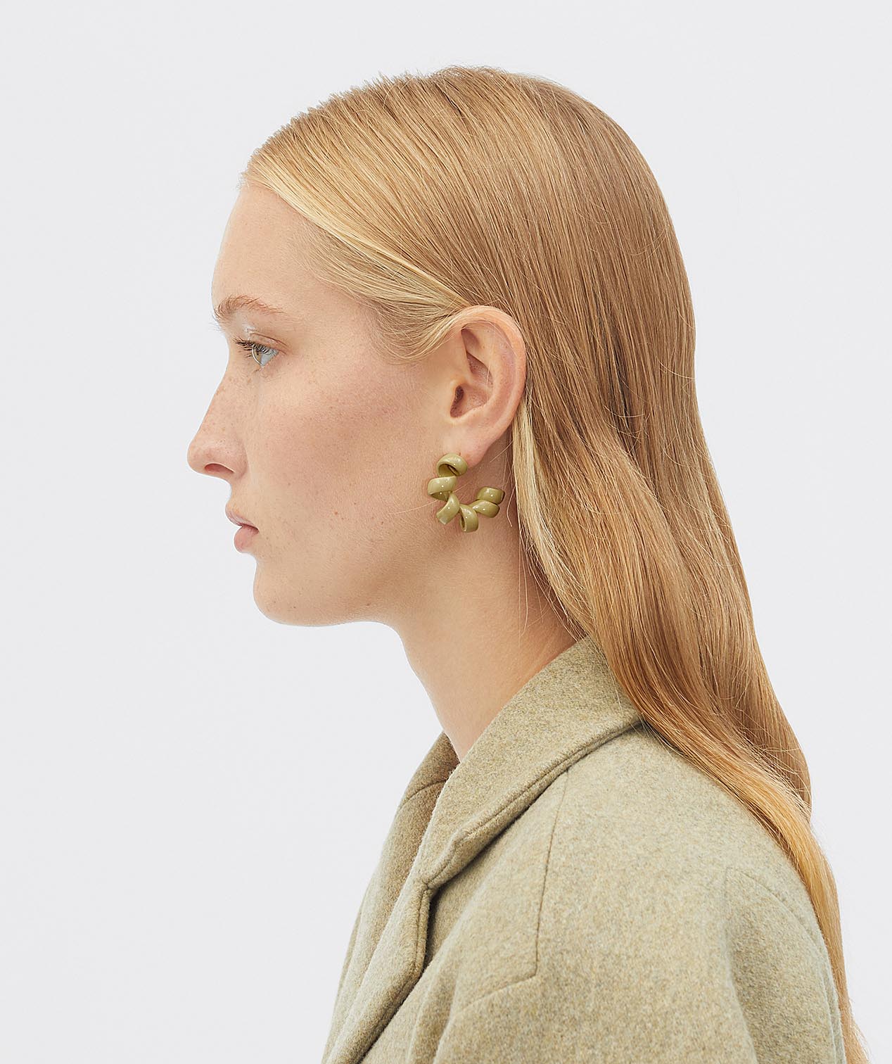 Lastly, Bottega Veneta also came up with two kinds of coiled earrings—one is a hoop-style that features sterling silver beads similar to their floral necklace collection, US$1,250; and another is a push-back style hoop earrings that costs US$800.
