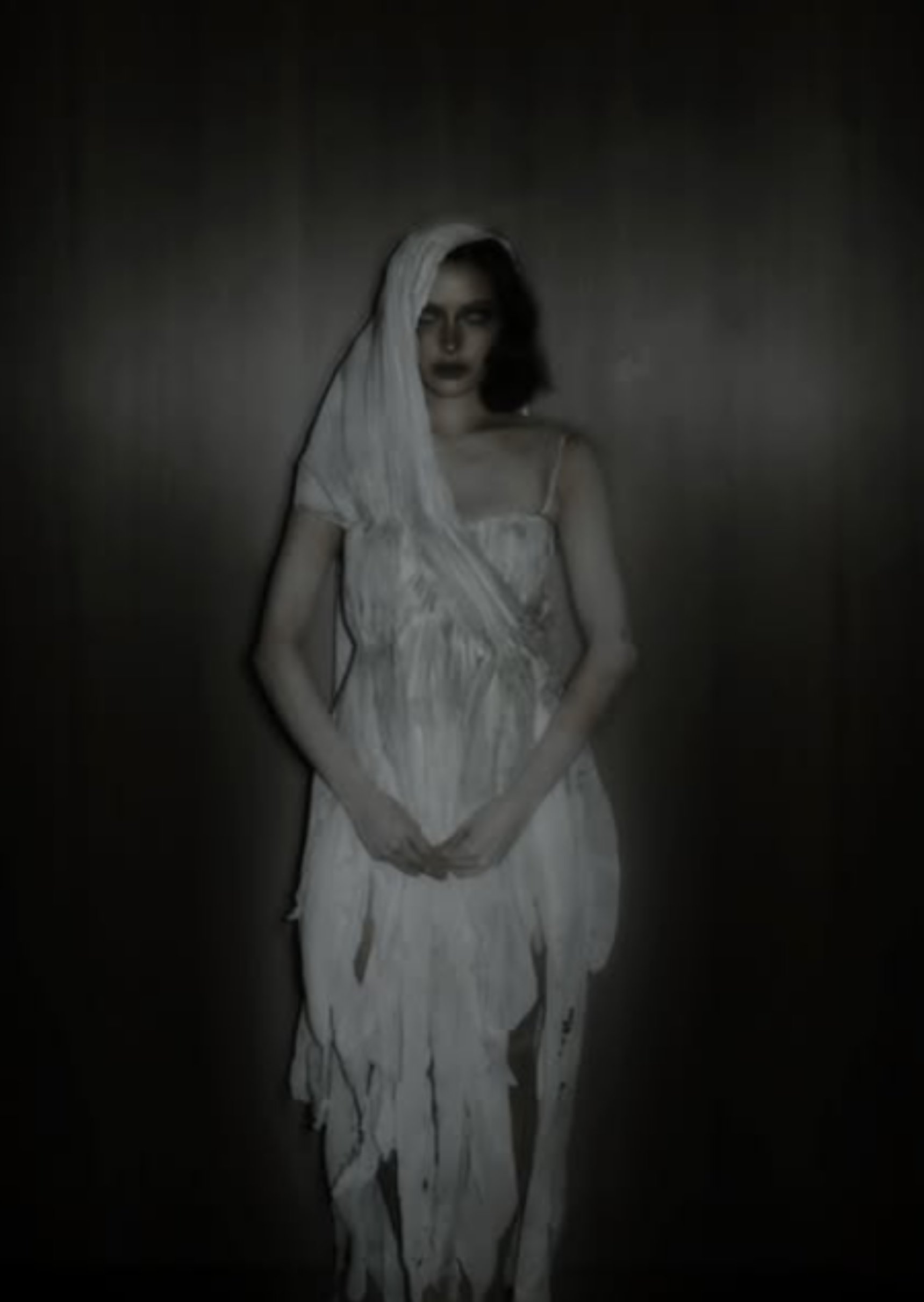 Internet personality Jamina Cruz flawlessly combined horror and couture with her ghost-inspired ensemble. Wearing a tattered white dress and a veil that adds to the theatrics, she delivered an eerie yet fashionable look.