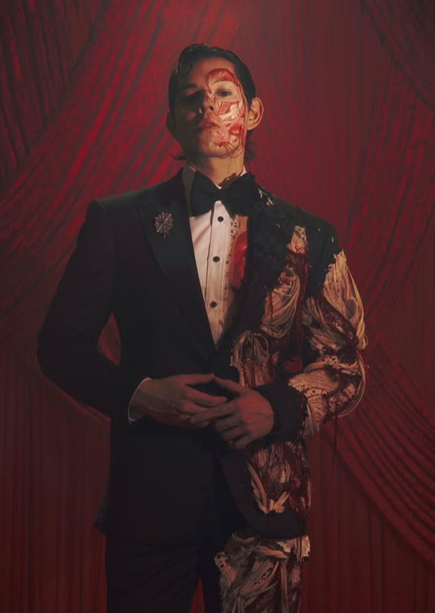 "The New Nocturnals" host Mond made a striking entrance in a custom Jaggy Glarino suit tailored to perfection with details that evoke anatomical muscle fiber.