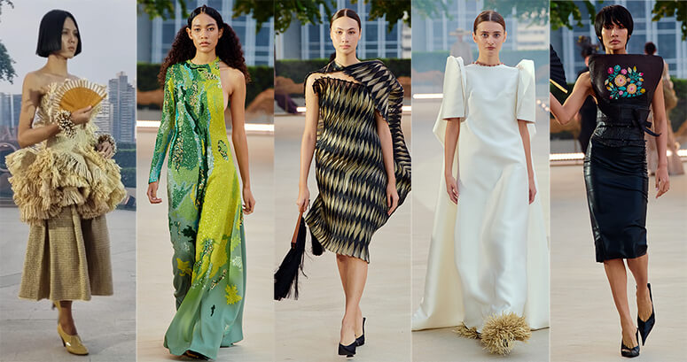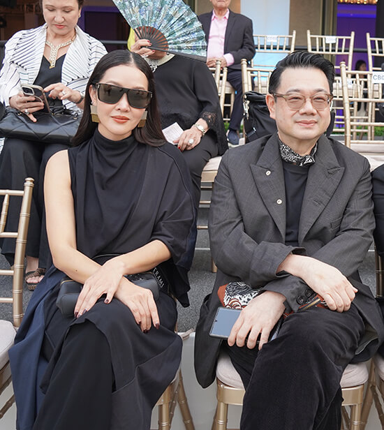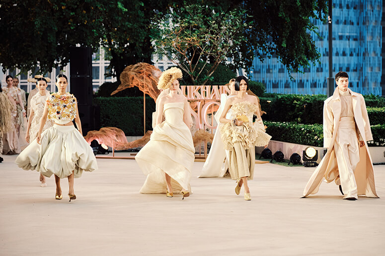 The choice of setting sharpened the message. Presented outdoors at Dusit Thani Bangkok, with Lumpini Park as backdrop and the Bangkok skyline settling into dusk, Lahi unfolded in a space that felt deliberately open—heritage allowed to breathe within a contemporary cityscape. Nature, city and fashion shared the same frame, reinforcing the idea that lineage does not belong behind glass but in the present.