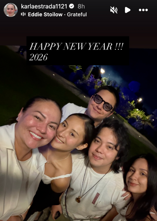 Karla Estrada, along with her kids Magui, Daniel, JC, and his wife, Nathalia, also ushered in the 2026 together. In Magui's Instagram story, they seemingly spent the event at J Castles, and later at The Vineyard Tanauan.