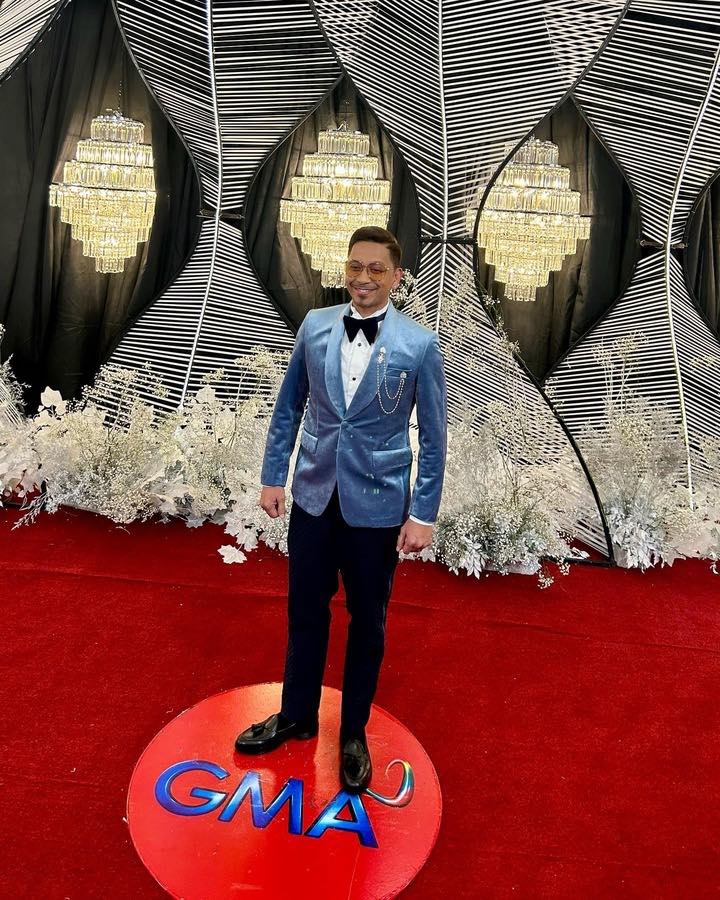 Jhong Hilario opted for a blue outfit by Jaggy Clarino, which he finished off with blue sunnies. The "sample king" also thanked his GMA-7 family for welcoming them to the network. “Masaya kami na nandito kami ngayon. Thank you, thank you. Always watch Showtime sa GTV,” he said.