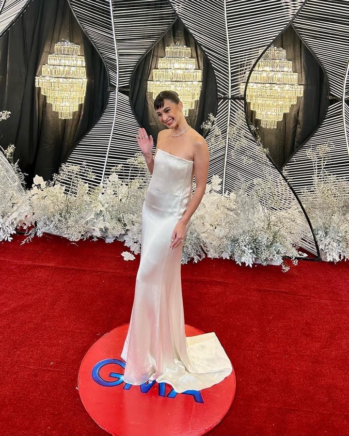 Looking classy as ever, Anne Curtis showed up in a Saint Laurent dress that she matched with Tiffany & Co. jewelry and an Audrey Hepburn-inspired hairstyle. “Hello, madlang Kapuso!” the It's Showtime host said as she greeted the livestream viewers, expressing her excitement to meet Kapuso stars and reunite with her longtime friends in the entertainment industry.