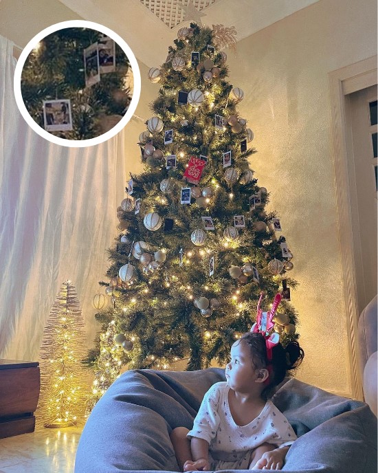 First off, the couple decked their towering green tree with glittery gold and white Christmas balls accentuated by yellow LED lights. Now, what takes the cake is how Elisse and McCoy filled it with Polaroid photos of their sweet, memorable moments together as a family.