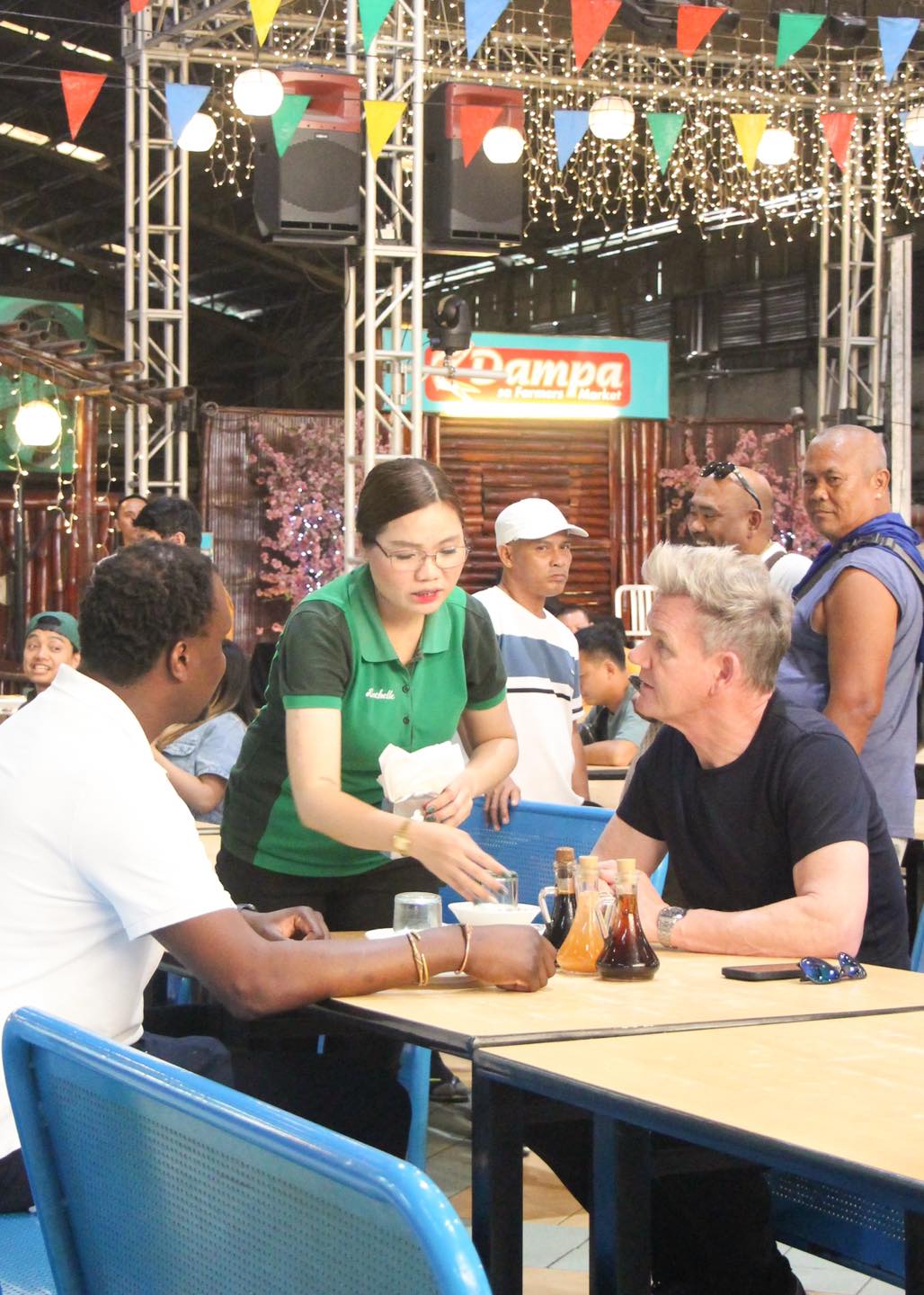 The renowned British chef, who has become a household name through television shows like Hell's Kitchen and MasterChef, was seen checking out fresh seafood in the market and ordering food from Dampa in the photos shared by Araneta City on its social media accounts.