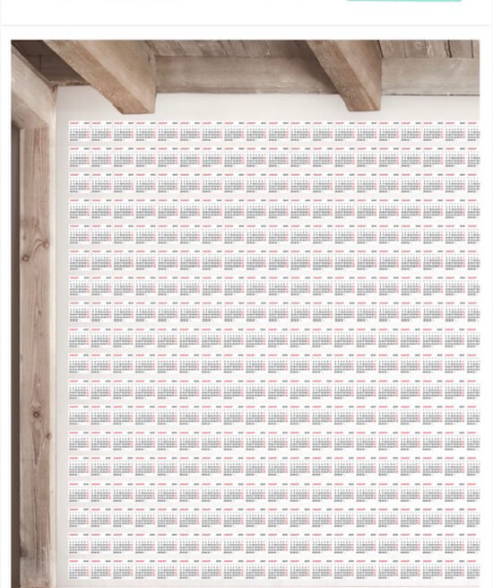 What started this “Esperanza de Vida (Life Expectancy)” project, a combination of performance (drawing all the calendars of one’s life within a week) and installation, was the recent death of an uncle, which forced the artist to start thinking of life and mortality. But this is not necessarily a macabre exercise. There are many ways to look at being in a space where one of the calendars (inevitably) contains the day of your death. You could view it as all the years pertaining to life, and what you would do with those days. Where will we travel this year? Perhaps by this decade, your children will be married? What will technology bring 20 years from now? All the questions of your life.