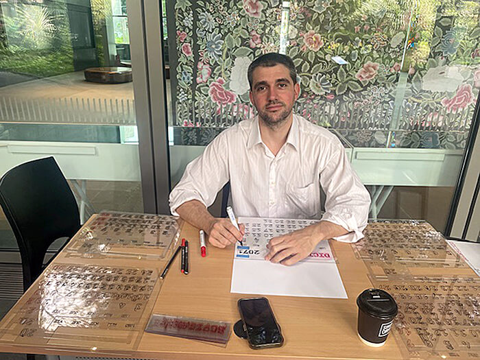 If you casually strolled past the Greenbelt Gardens this past week, you may have noticed a slightly unusual sight: a young Spanish man seated at a desk, earnestly stenciling the letters and numbers of a calendar. If you had looked a little more closely, you may have been surprised to see that the calendar he is working on is for the year 2071!