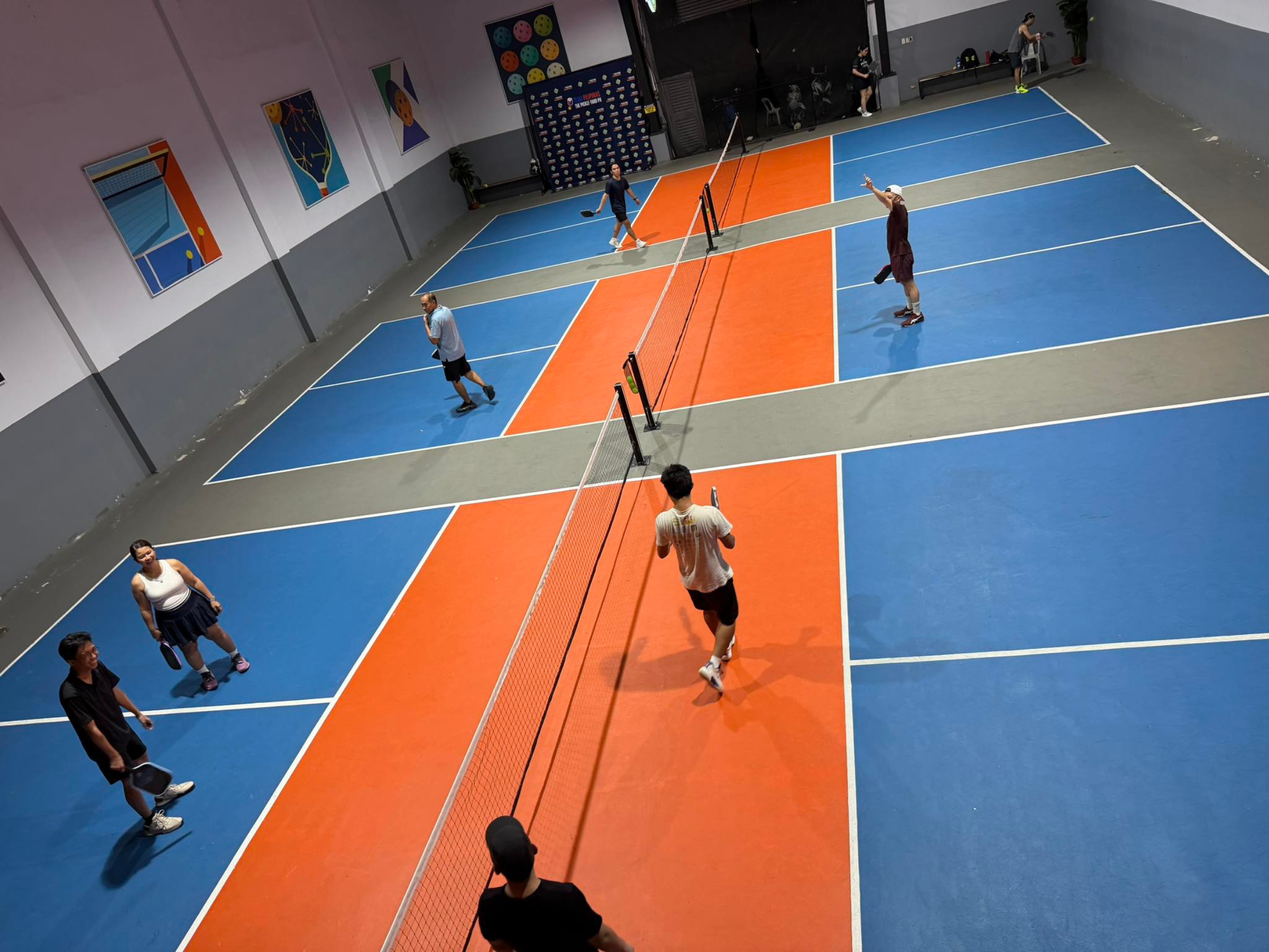 Pickleball for a Christmas party? Why not? In addition to tournaments, The Pickle Yard also hosts private events. You may enjoy three standard pickleball courts, access to the lounge and viewdeck, a kitchen area with three six-seater tables, and free use of three pickleballs and six paddles.