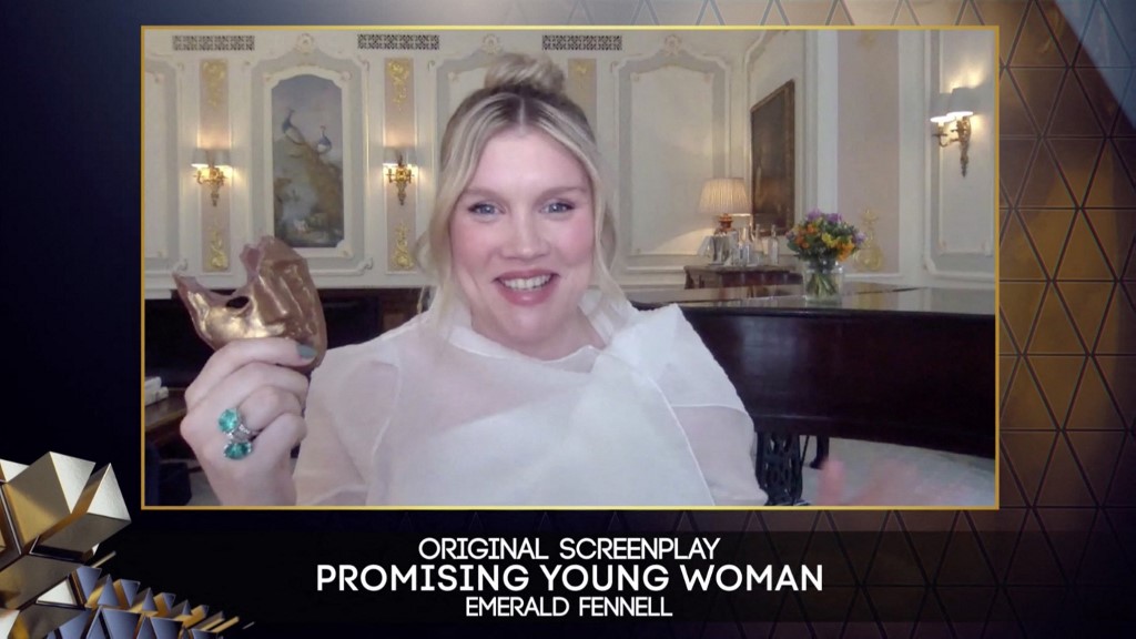 The film, which has elements of comedy and horror, won for outstanding British film and original screenplay. Sitting in front of a grand piano in a gauzy white dress, Fennell described the film as a “labor of love.”