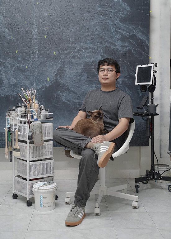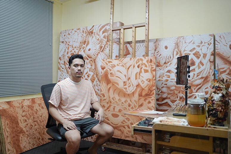 At Art Fair Philippines, on view to the public from Feb. 6-8 at Circuit Corporate One Center at The Circuit, Makati, two exhibitions propose distinct yet resonant modes of inhabiting the world through painting. Art Cube’s presentation, “Inhabitants,” a solo show of Don Bryan Bunag, confronts the viewer with environments that feel monumental, awe-inspiring, and movingly mysterious. In contrast, Isko Andrade’s “After Solace,” this time under Art Verité, offers an intimacy of vision shaped by touch, memory, and quiet repetition.