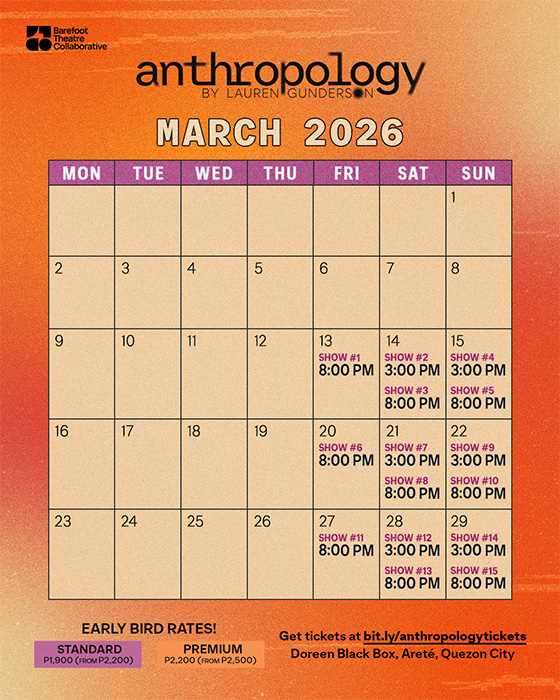 Tickets are now available at bit.ly/anthropologytickets. You can score 15% off through an early bird promo, which lasts until Feb. 19. During this period, standard seats start at P1,900 (P2,200 regular price) while premium ones go for P2,200 (P2,500 regular price).