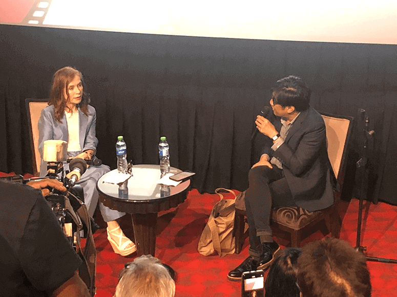 Where Isabelle Huppert sits now is Greenbelt 3’s My Cinema, reserved for the 25th French Film Festival. It’s also the 75th anniversary of French-Philippines relations, so the festival (concluding Oct. 30) has much resonance. Huppert stars in two new films showing this year—A Propos de Joan and Les Promesses (“Two films is not a lot,” she jokes)—and she graciously sits down for not one, but two media Q&A sessions (ably moderated by huge fan Sarge Lacuesta).
