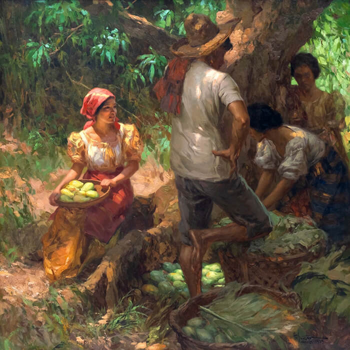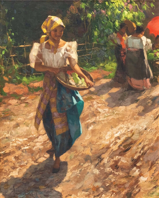 For it is a disservice to look at an Amorsolo painting as a mere transcription of reality, as some kind of postcard from the past, a throwback. He was not simply translating the world as he saw it but heightening and refining its forms to construct his visual philosophy on what it meant to be a Filipino during the fraught period of the American occupation. He defined a vision of a national identity not for what it was, but what it might be. It was picturesque and idealizing: a belief on the rationality of classicism, a persistence of beauty, a perfect alignment of man and nature.