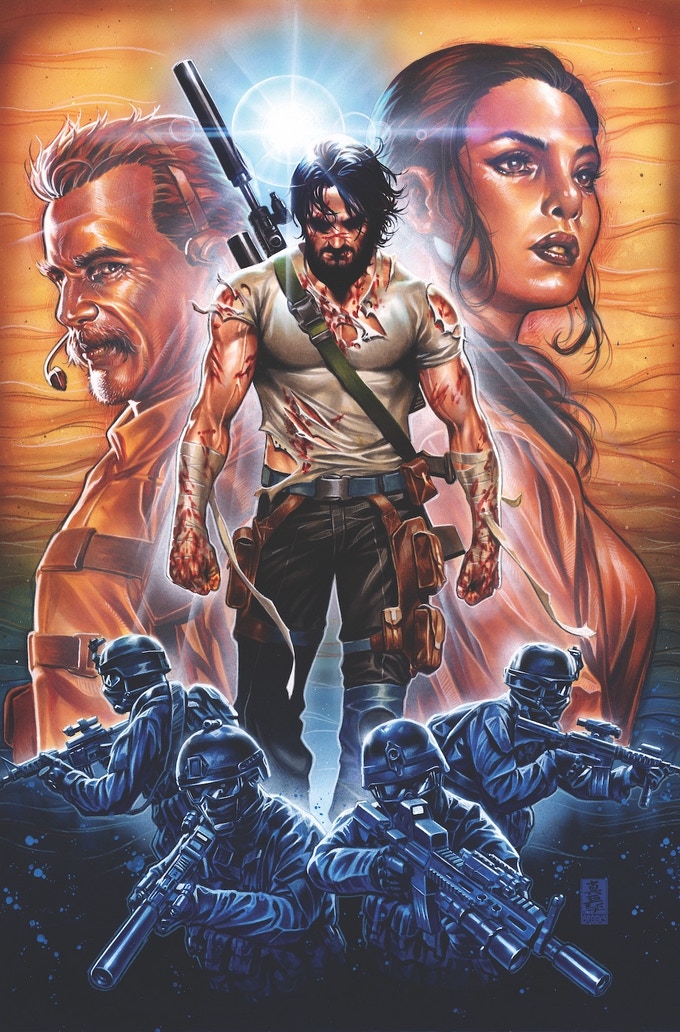 For only 50 backers, Tier 9 is BRZRKR signed “Platinum Immortal Kickstarter exclusive limited edition Deluxe Boxed Set with each slipcased hardcover volume having exclusive cover art all encased in a collectible “platinum” box. Plus, Kickstarter exclusive print signed by no less than Reeves, Kindt, and Garney.