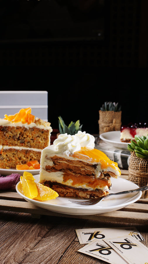 The cafe's menu includes hot and iced coffee beverages, bottled Coffee Matcha, Salted Caramel Latte, and more. For pastries and desserts, the cafe offers Mango Cake, cookies, bluberry cheesecake, carrot cake and more. They even have a Popcorn Frappe!