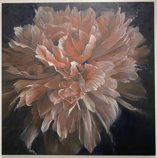 For her new show at Altro Mondo, “Invisible,” Regina Arambulo-McAndrew paints large roses, peonies and multilayered flowers sourced from Baroque-era paintings (even the titles, like “Adora,” come from obscure paintings rich in light and shadow).