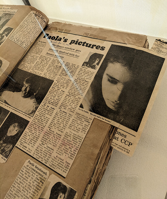 Contrary to its title, “21 Portraits” is not merely a compendium of portraits. It is a show that reckons with the archive as a medium for processing and preserving artistic identity, one as extensive as Paola’s. Sprinkled throughout the exhibition are newspaper clippings, book covers, a poetry excerpt, and even a headset playing Paola’s 1989 album “Stand Alone,” all of which furnish the space with a homespun feeling.