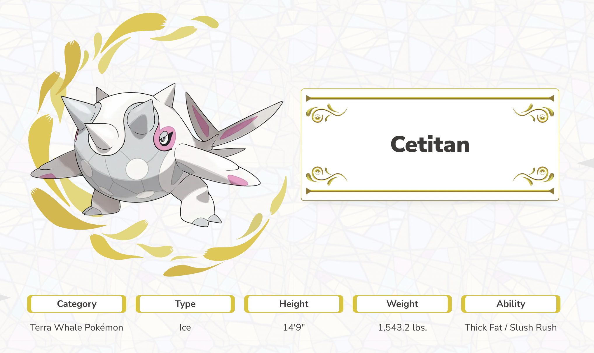 While ice-types are normally fragile, there's nothing fragile about Cetitan, which boasts a "large body and a hard horn that can freeze its surrounding".