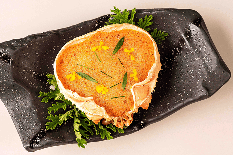 We move back to the main dining table for the crab relleno, another hit recreated from Lolla. Siy calls it “an ode to home,” with its shell holding a delicious smoked paprika foam, kaffir lime oil, kaffir leaves and mustard flowers; dig deep and enjoy the aligue river crab tomalley paste, the pearl couscous, the smoky burnt cabbage—and, of course, the plump, perfectly cooked crab chunks amid a fizzy bath of aromatic, citrusy flavors. Few crab dishes I’ve had can match this.