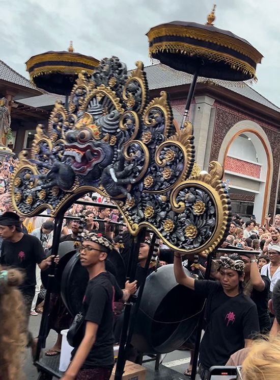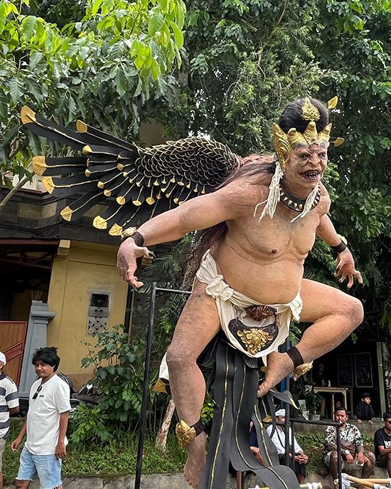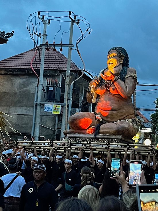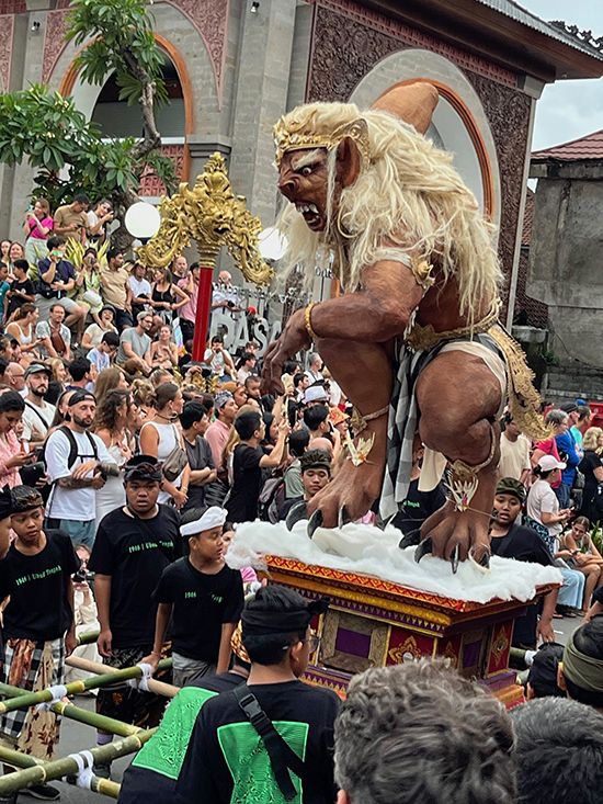 We positioned ourselves by the Ubud Palace, where an emcee annotated the parade. The ogoh-ogohs were quite awesome, from winged creatures to ghoulish, naked women straight out of a horror film. The energy was tremendous, as participants holding on to the bamboo mounts vigorously shake the living daylights out of the giant statues to the music created by marching musicians.