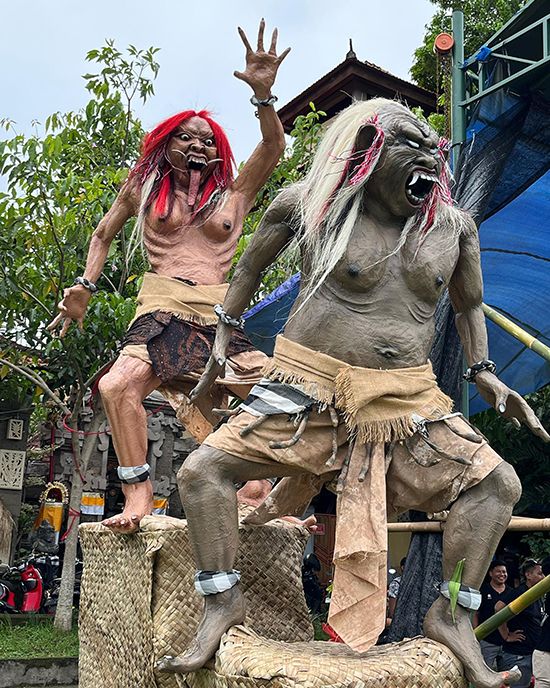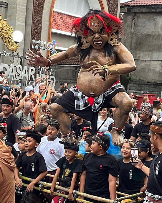 The ogoh-ogohs were such works of art that it was a pity knowing they would end up in the cemetery to be burned in a final purging. The whole experience was quite overwhelming, watching them jumping, shaking and shouting with wild abandon, as they carried the demon creations to their ultimate destruction in a joyous conflagration.