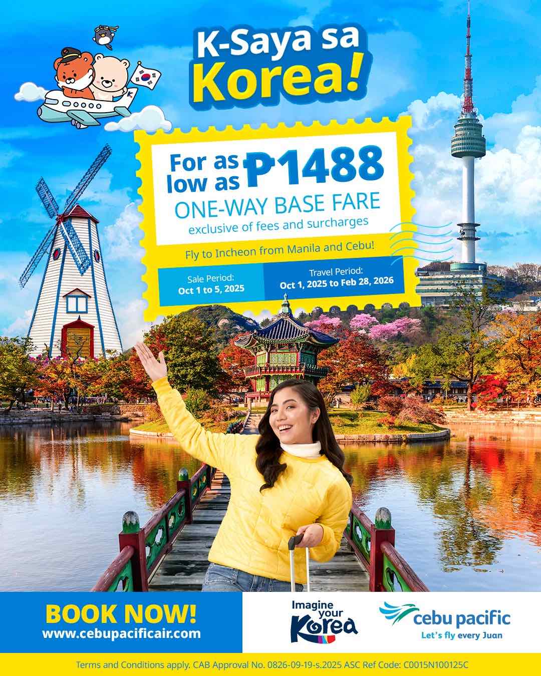 Until Oct. 5 only: Cebu Pacific offers P1,488 one-way base fare to Korea