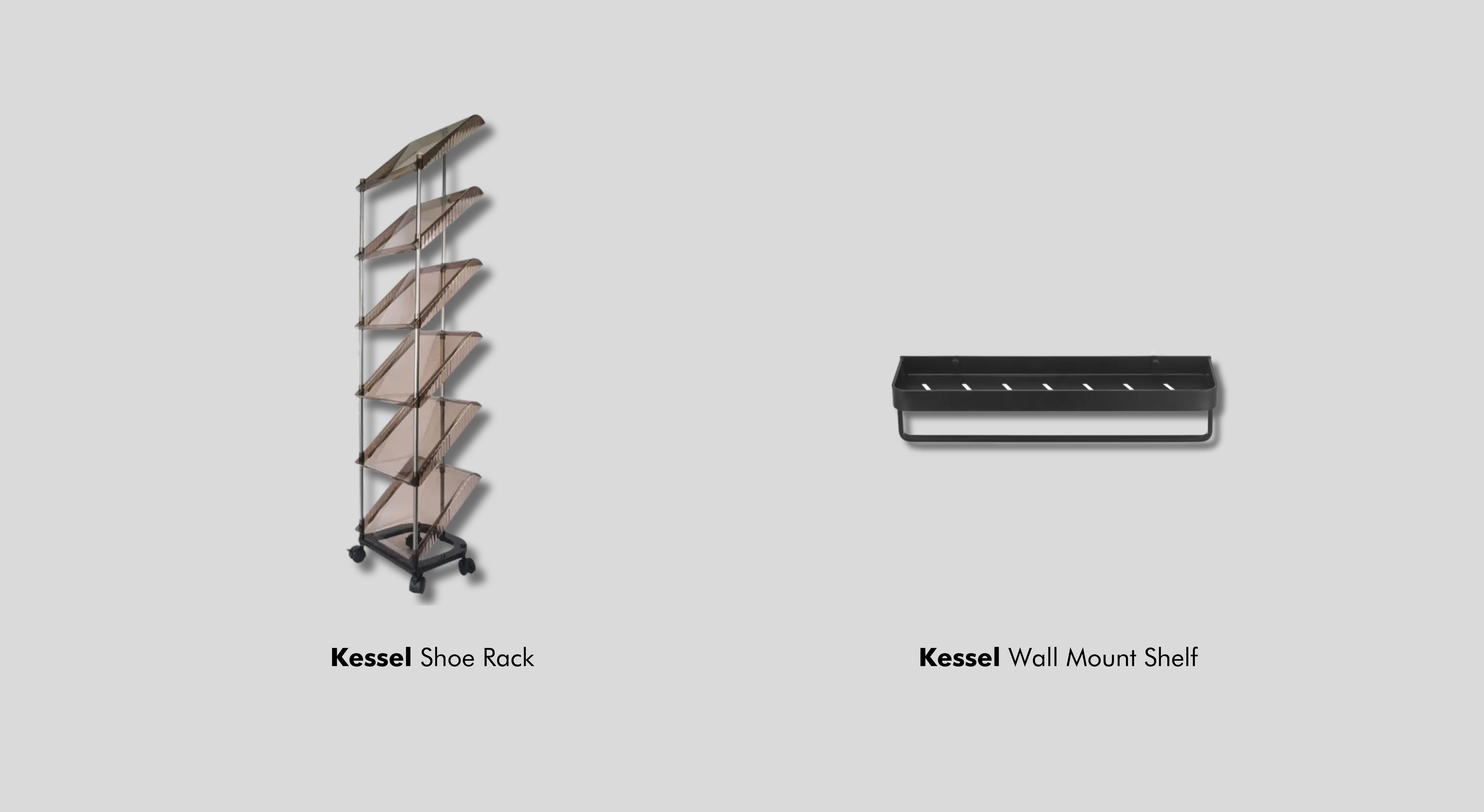 Now, for the bathroom. The Kessel Wall Mount Shelf is a practical solution to small bathrooms with hardly any storage space. Install this on the wall to hold your hand soap, toothbrushes and toothpaste, plus a small air-purifying plant. Hang a hand towel on the hanging rack underneath. And because the shelf is made of aluminum, no amount of moisture will cause it to rust.