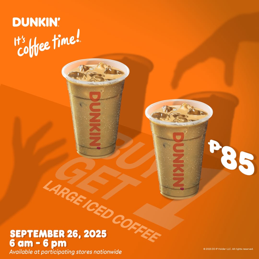 For one day only: Dunkin' to offer Buy 1, Get 1 promo on large iced coffees for P85
