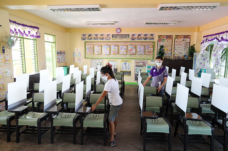 The upcycled chairs are now being used by teachers and parents during pick-up and submission of modules since the schools transitioned to blended learning and will be even more useful when schools gradually resume face-to-face learning.