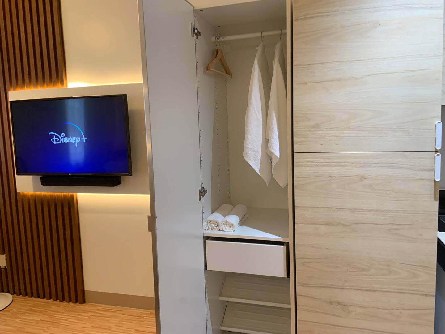For your culinary adventures, they have a mini kitchen complete will basic kitchenware like an induction stove, rice cooker, electric kettles, and pans.