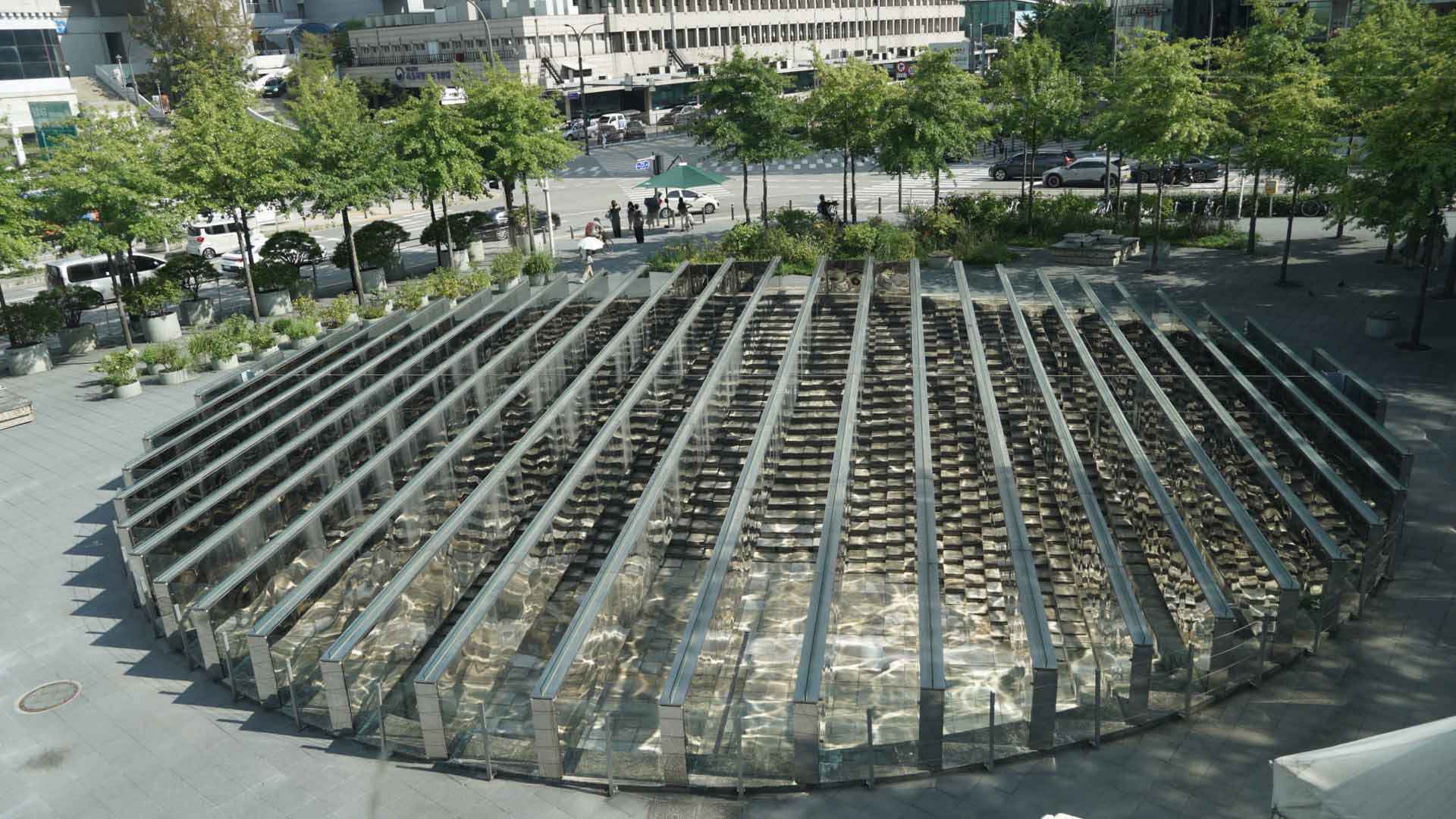 Built in 2016, it’s a sunken concrete space made of rocks, mirrors, and polished metal. Yoonsul, which translates to sparkling ripples following the reflection of either sun or moon, serves optical illusions from various angles and at different times of the day. At sunup, the mirror roof reflects the sky and cityscape—as natural light permeates to reveal water-like rays and shadows hovering over the floor. At night, the lit interiors glow in various patterns as they project into the roof before marrying the evening light outside. It truly looks as poetic as its name!