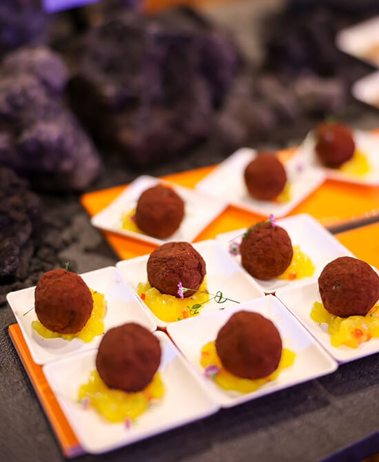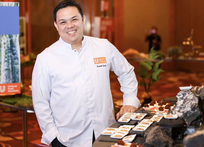 UFS Philippines executive chef Kenneth Cacho showed us his take on the Flavor Shock trend through truffle balls with a cassava filling and roasted white chocolate filled with salted egg powder, decorated with edible flowers. The latter was a collab with one of my favorite chocolatiers, Christian Valdes, who has made a name for himself concocting other unusual and delicious chocolate pairings.