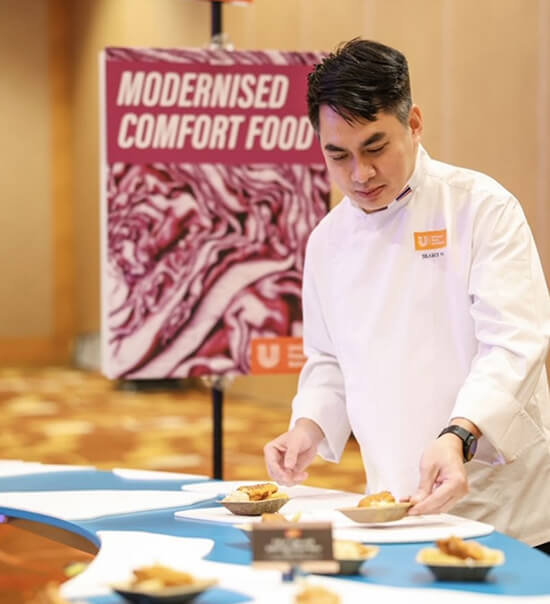 UFS Philippines’ country marketing manager Monica Reyes welcomed chefs and media from around the globe to an interactive food tasting to explore the trends “New Ways for Low Waste,” “Flavor Shock,” “Local Abundance” and “Modernized Comfort Food.”