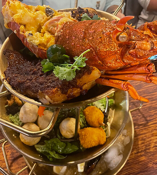 We also enjoyed delicious and innovative meals during our stay in Singapore, starting with dinner at White Label, a Halal restaurant offering French cuisine in a beautiful heritage structure. There was lunch at Roberta’s which was both an Italian restaurant and the gallery of Wasuka Art. At Seafood by the River, located along the colorful Boat Quay, we enjoyed lobster and lively banter. And I joined my cousin Angie Rosales and her husband Yeng for a yummy Peranakan meal at Violet Oon’s.