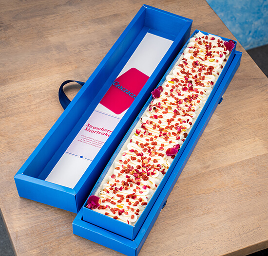 Her creativity evolves with every season. For the holidays, she introduces three indulgent slab cakes—Tiramisu, Strawberry Shortcake, and Chocolate—each measuring 21 inches, weighing four kilos, and served with a customized spatula for slicing.