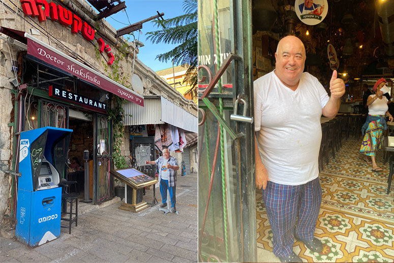 Doctor Shakshuka (aka Bino Gabso) holds court in the center of the Jaffa flea market. He’s gained international fame, a sort of YouTube and Instagram sensation. My friend Mia and I ran over while waiting for our ride to check it out, and lucky for us the “doctor” was in; sad to say though we didn’t have time to sample his many versions.