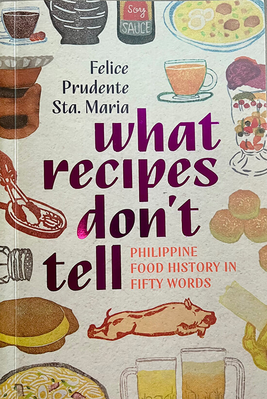 Tireless detective work fuels Sta. Maria’s uncanny explorations through early literature. A back-cover blurb allows: “Uncovered are forgotten, hidden, and ignored details of fifty culinary words foundational in deepening appreciation for native fare: from guisa to kilaw, ensaymada to halohalo, tuba to tsokolate, and linamnam to nayanaya.”