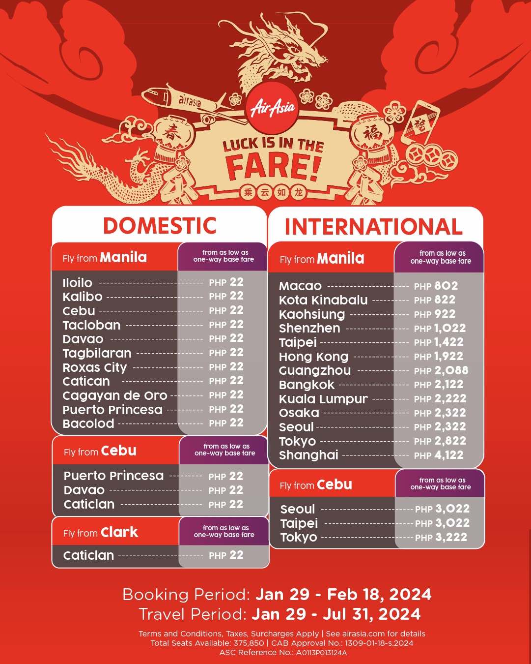 AirAsia extends seat sale with P22 flights until Feb. 18 for Chinese New Year