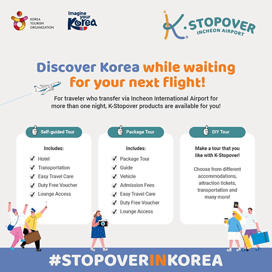 However, if you have at least five hours before your next flight, KTO invites you to go out, explore and make your Korea stop as memorable as your final destination through K-Stopover and Free Transit Tour programs.