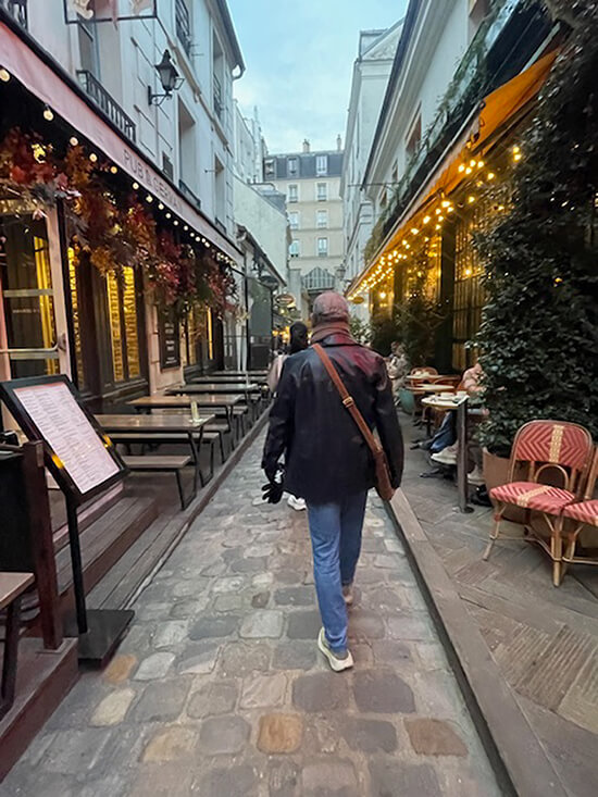 Home for us on this visit is a beautiful gem of an apartment in Le Marais, itself a charming neighborhood of artisanal jewelers bereft of tourists in late fall. At this time of year the Parisian weather is crisp, clear and calm. The trees are shedding their yellow and orange-red leaves. The light is clear and the sunlit visage of the city’s perfectly proportioned boulevards, roads and trees is the dream of any poet, painter or lover.