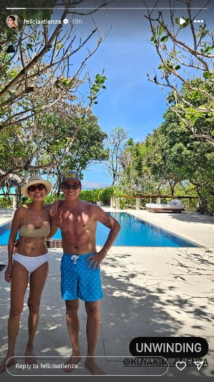 In Felicia's Instagram stories, the pair can be seen enjoying the summer heat by the pool. "Unwinding," she wrote in the caption.