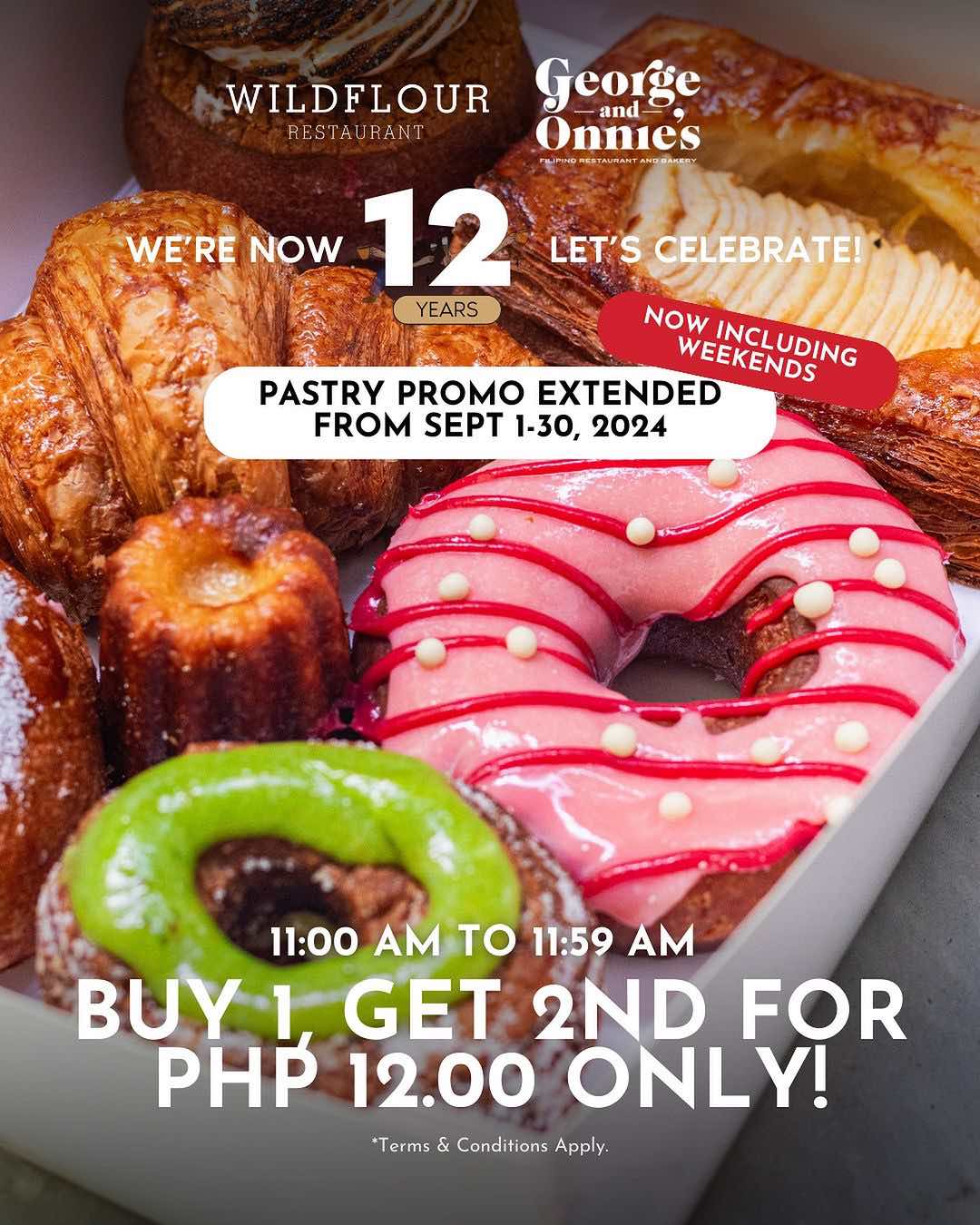 Were you able to enjoy Wildflour's 12th anniversary pastry promo last month? The irresistible deal has been extended, letting you buy one pastry and get another one for as low as P12 until Sept. 30.