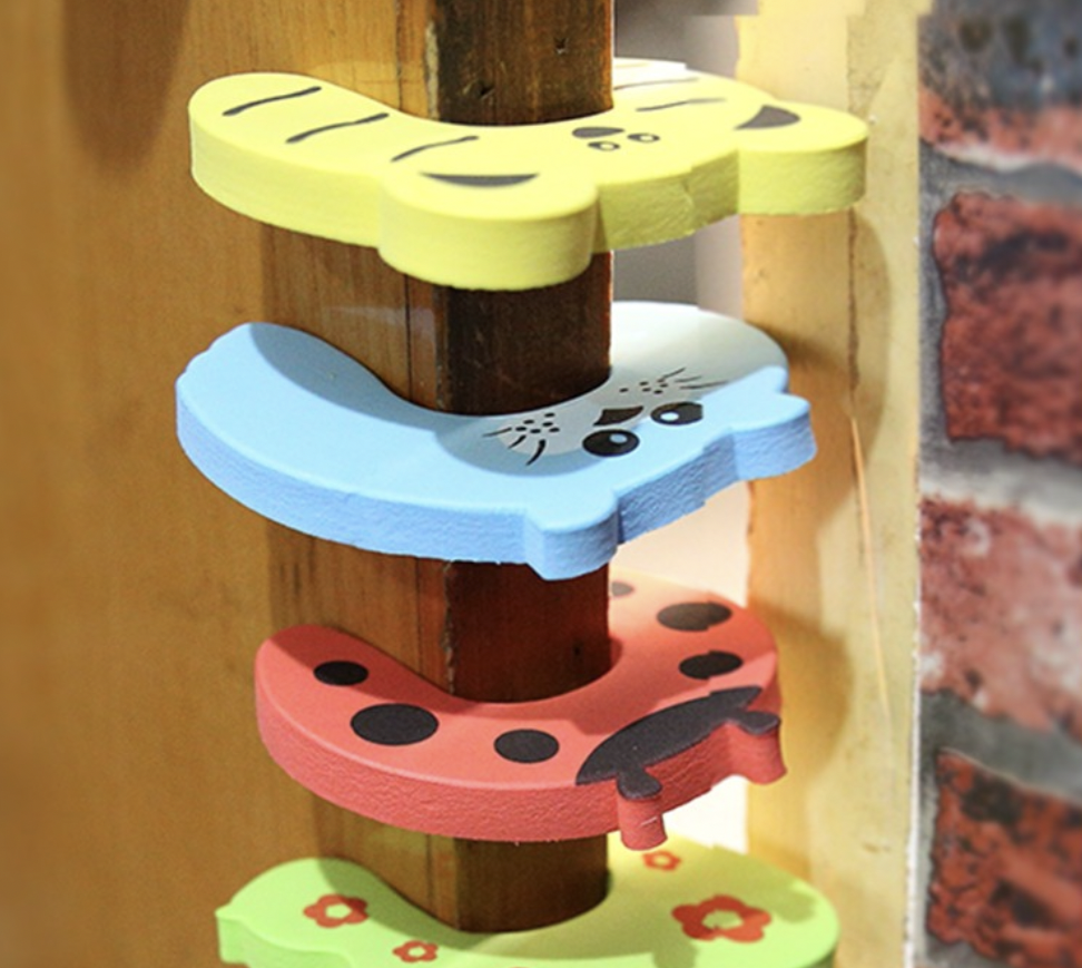 Unless necessary, doors should be kept a little open and you already know why. Keep the little fingers safe by putting a simple door clamp or stopper, and make sure the kids cannot reach or remove them. Or just cut out DIY clamps from thick foams in your bodega. Or hang a towel on top, whichever is more convenient.