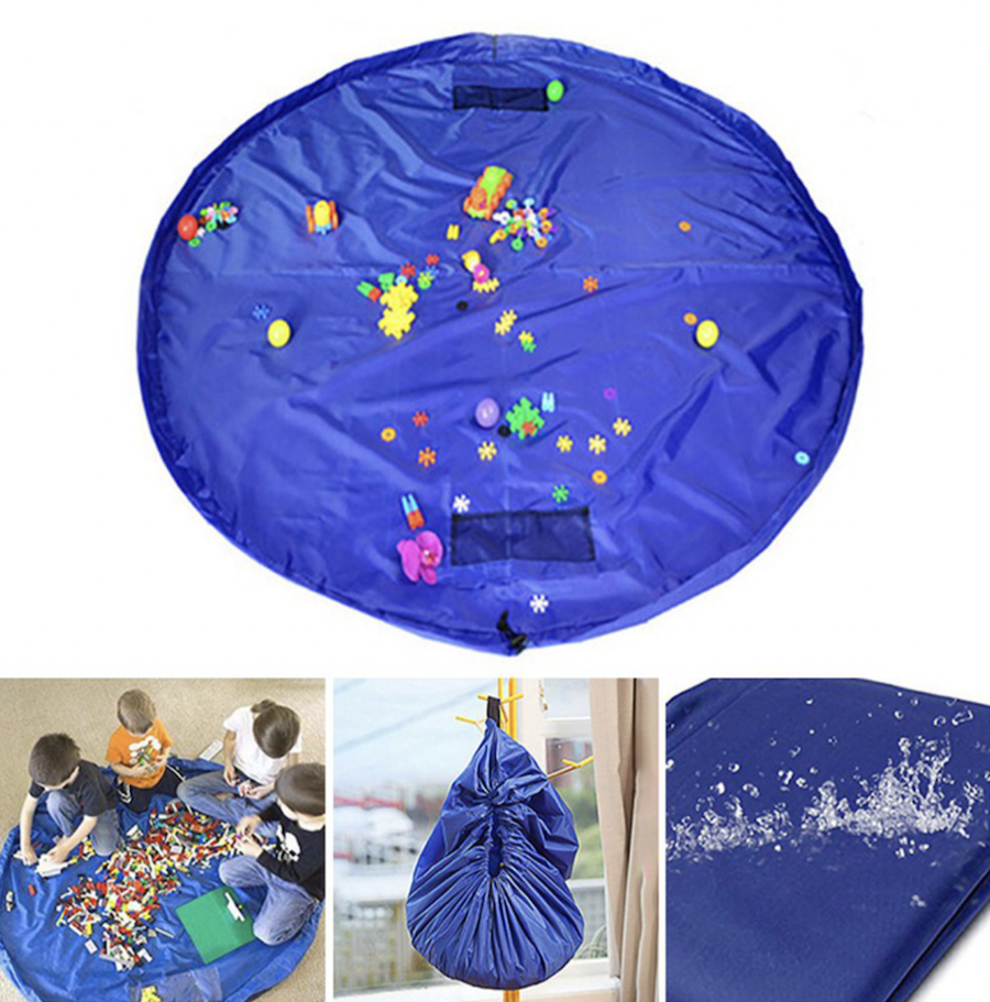Round play mats with pull-up strings are an efficient way to transfer small toys from one room to another, or to store them after playtime. They’re available online in various sizes and those with water-resistant fabric can even be a nice alternative to regular picnic and beach mats—post-pandemic, of course.