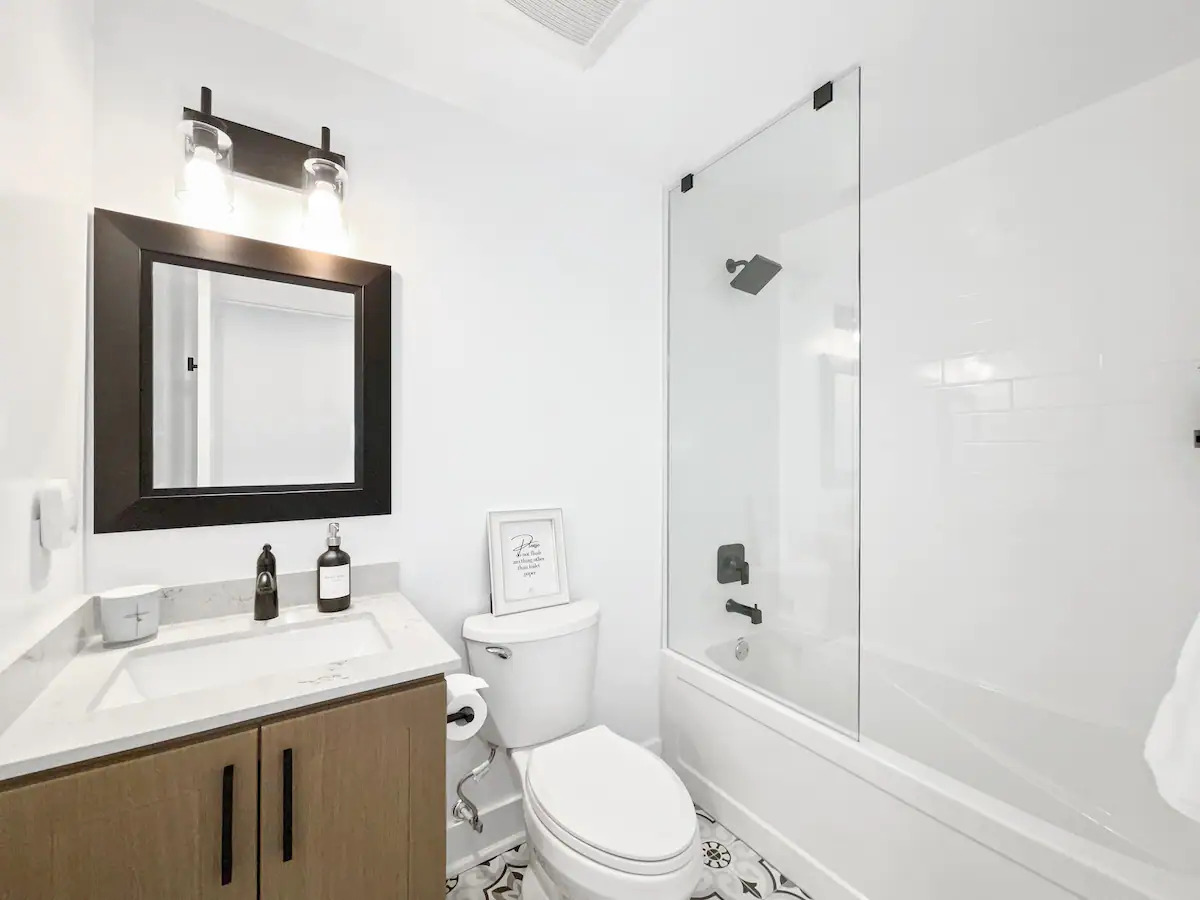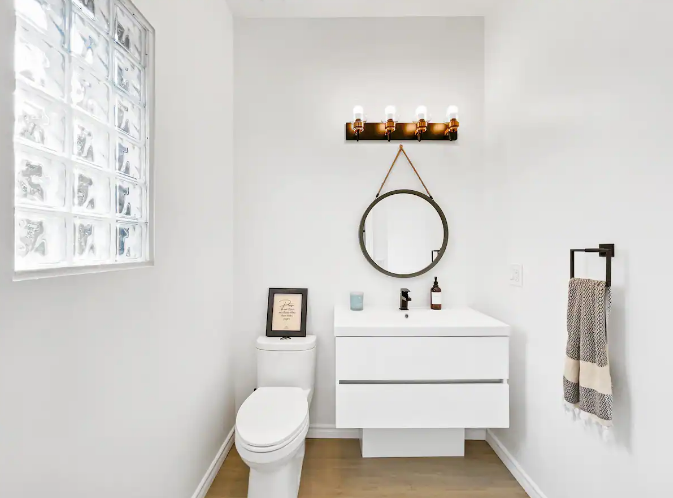 The bathrooms in the lakehouse are equipped with electric toothbrushes from Pressman's brand Wavee as well as a Bluetooth speaker system with replaceable heads. Some have showers, while the main bathroom is complete with a tub.