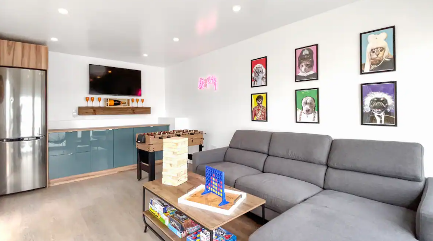One of the highlights of the place is its separate boathouse that serves as a game room. It's equipped with a bar, smart TV, and a gaming table for board games, providing endless fun for its guests.