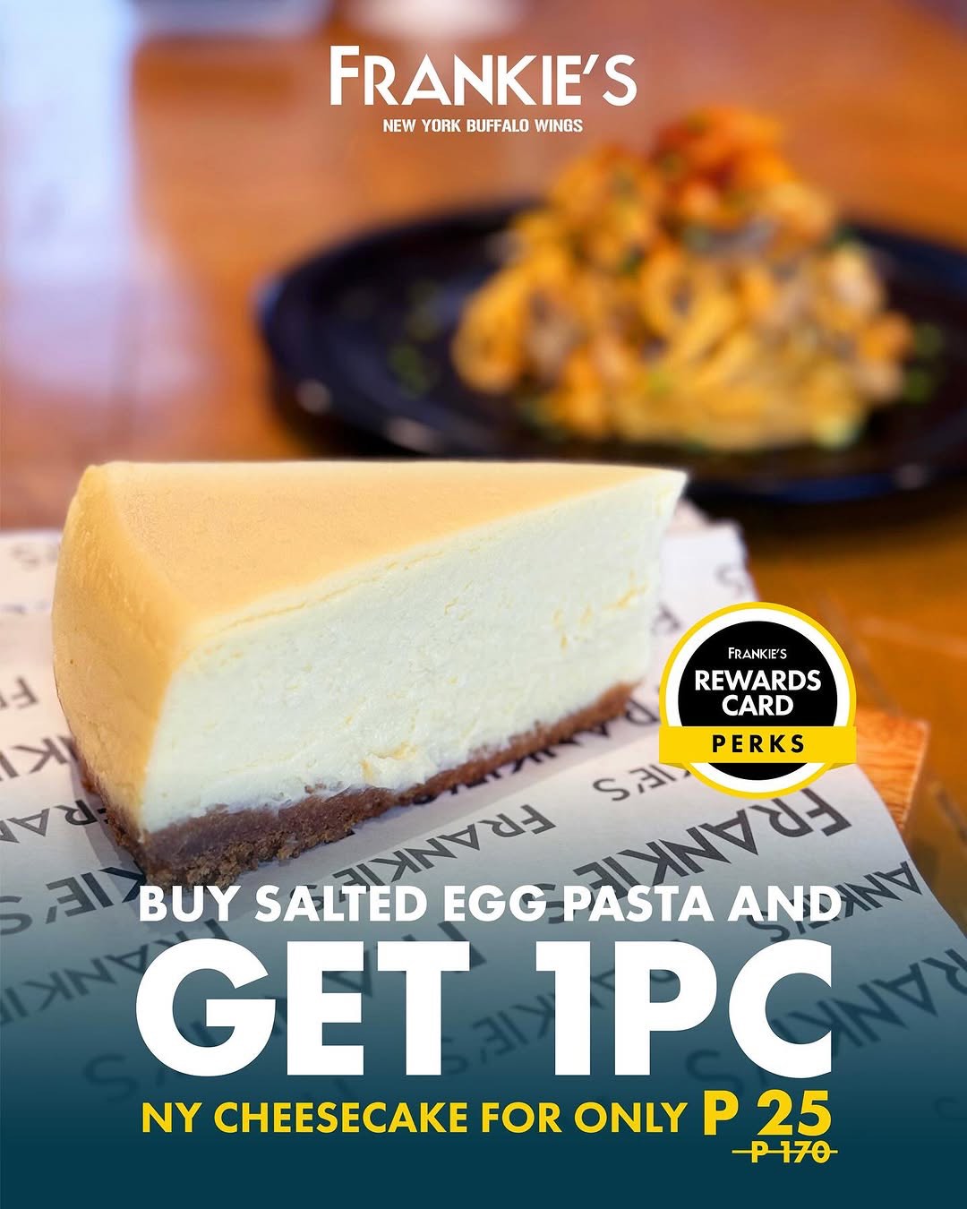 If cheesecake is one of your favorite desserts, you might want to check out Frankie’s latest offer, which lets you enjoy a slice of its bestselling NY cheesecake for P25 instead of P170.