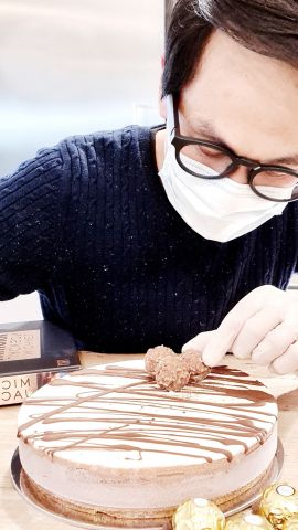 “I use premium chocolates for our frozen chocolate cake and I always have complete fun making the toppings. I mostly work with Ferrero Rocher to top each Chokokeki, but I also experiment with other ingredients such as raspberry,” Harvey says.