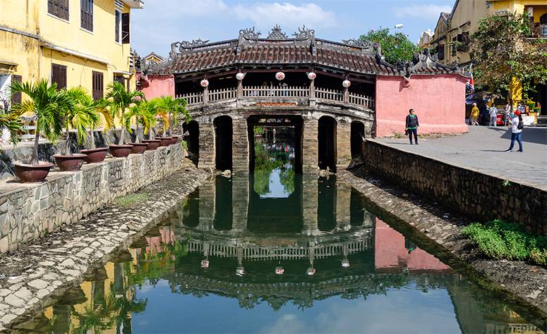 Japanese traders set up their quarter with dozens of wooden houses. The Japanese covered bridge—one of the key attractions today and the only one of its kind with a Buddhist temple attached on one side—was built with a curved roof typical of a Japanese traditional house, Chinese-style red lacquer wood and stone on the main structure and Vietnamese Yin-Yang tiles decorating the roof.