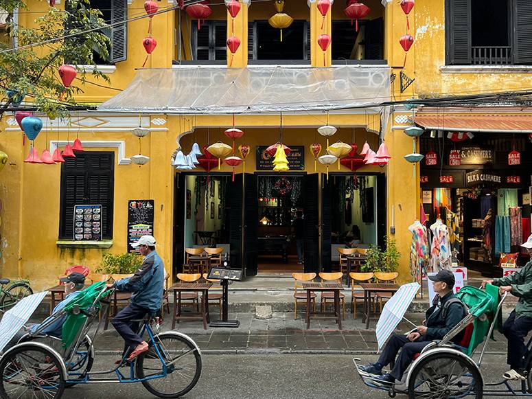 It’s like an outdoor museum as you encounter different architectural styles and interiors. Chinese-style buildings typically have a tiled roof and a courtyard while Japanese-styled ones have low roofs and exposed wooden beams. The Old House of Tan Ky is a fine example of traditional Vietnamese architecture with elaborately carved columns, lovingly preserved since 1741 for seven generations, surviving even a historic flood in 1964.